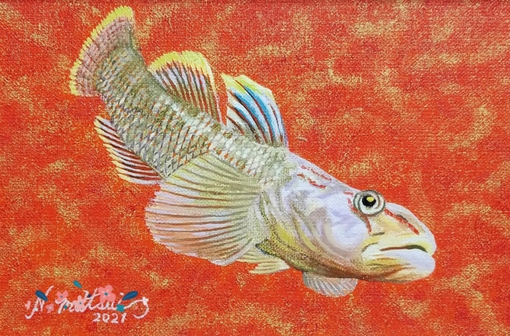 地元埼玉県の婚姻色に染まった、クチボソの夫婦を描きました。